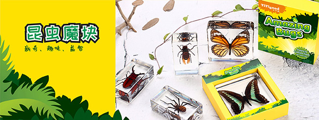 昆蟲(chóng)魔塊系列產(chǎn)品,是由昆蟲(chóng)包埋標(biāo)本配套觀察工具組成。標(biāo)本晶瑩通透、精致小巧,昆蟲(chóng)自然真實(shí)、栩栩如生,激發(fā)孩子的無(wú)限好奇。通過(guò)對(duì)昆蟲(chóng)標(biāo)本的觀察、認(rèn)知,培養(yǎng)孩子的興趣愛(ài)好、觀察能力和探索能力。