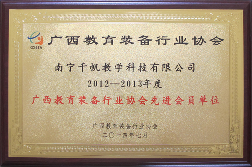 南寧千帆教學科技有限公司榮獲廣西教育裝備行業(yè)協(xié)會授予“2012-2013年度廣西教育裝備行業(yè)協(xié)會先進會員單位”稱號。