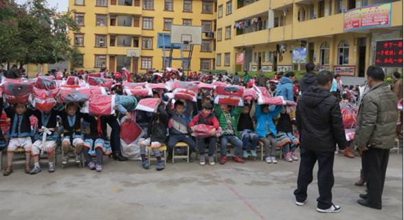 南丹縣里湖鎮(zhèn)是廣西白褲瑤聚居鄉(xiāng)鎮(zhèn),被譽(yù)為“中國(guó)白褲瑤之鄉(xiāng)”。那里的學(xué)生學(xué)習(xí)和生活條件都十分艱苦,很多孩子在嚴(yán)寒的冬天依然缺衣少襪,有的還穿著涼鞋單衣。千帆公司給南丹縣里湖鎮(zhèn)的瑤族鄉(xiāng)民族中學(xué)、中心小學(xué)和干河小學(xué)的孩子們帶來(lái)了大批的冬衣、學(xué)習(xí)設(shè)備等愛(ài)心物資。希望在寒冷的冬日,能讓山村的孩子們感受到濃濃的暖意。