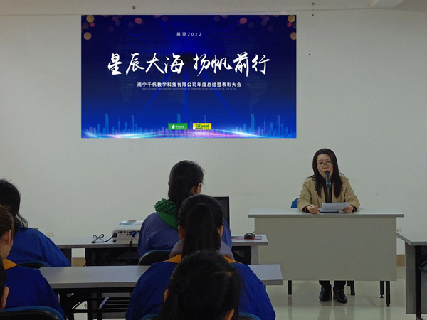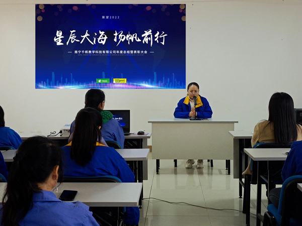 2022年1月28日,南寧千帆教學(xué)科技有限公司2021年度總結(jié)暨表彰大會隆重舉行,認真總結(jié)2021年度取得的各項成績及